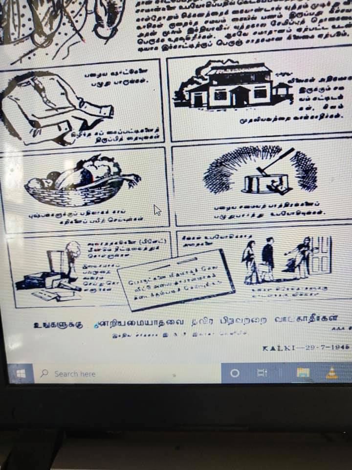 இரண்டாம் உலகப் போர் நேரத்தில் எல்ல விதத்திலும் சிக்கனத்தைக் கடைப்பிடிக்கும்படி அரசு மக்களை வற்புறுத்தி வந்தது. ஜூலை 29, 1945 கல்கி இதழில் வந்த அரசு விளம்பரம் இது. இது போல் இன்னும் சில விளம்பரங்கள் அந்தக் காலகட்டத்தில் வெளியாயின.